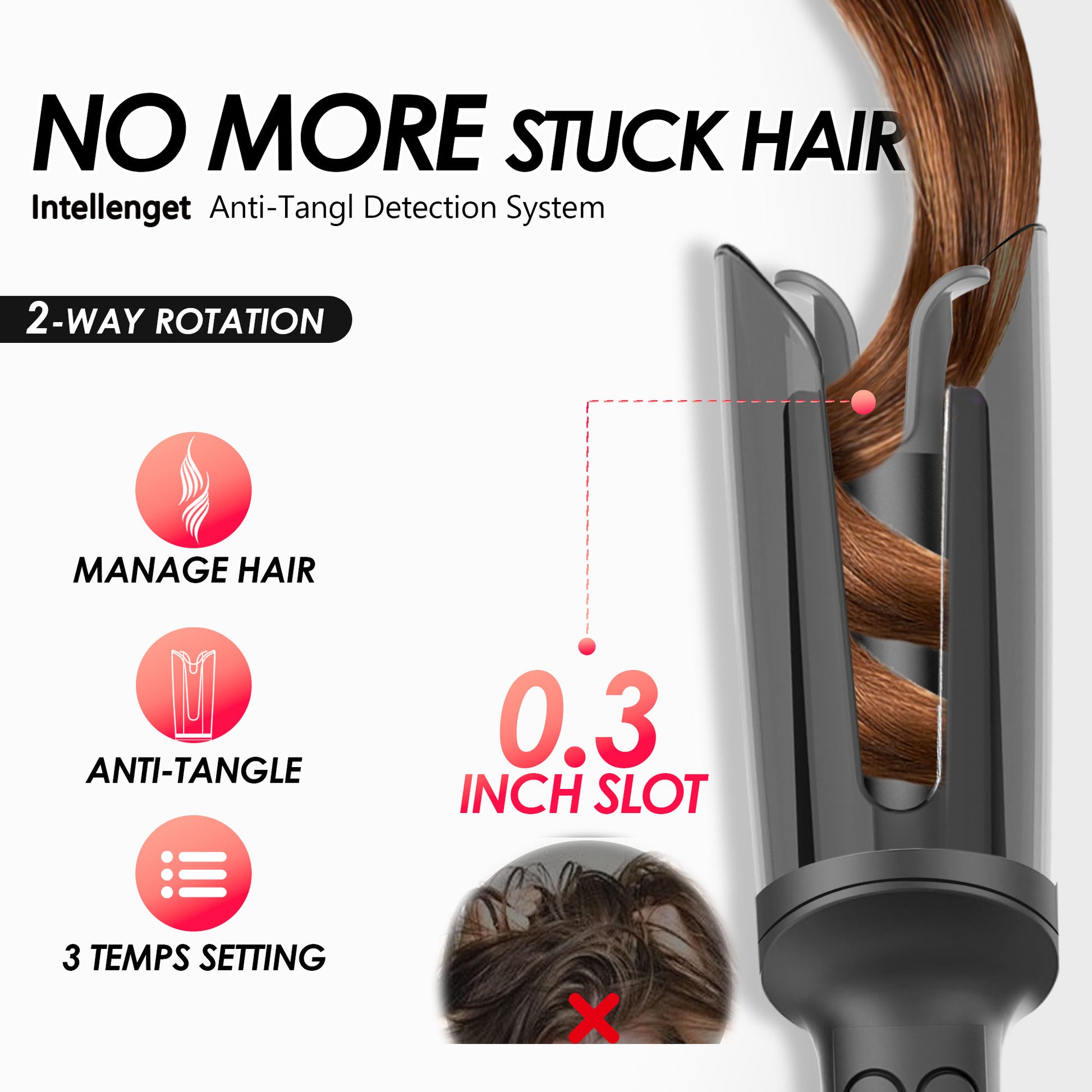 - 【Anti-Scald & Anti-Tangle】 The heat-resistant cover of the hair curler feature special anti-burn design to protect hands and face during the hair styling process. It is equipped with an anti-tangling chip and a unique 0.3-inch slot and hair guide, ensuring that the hair adheres tightly to the hairpin without tangling, making it very friendly to beginners.