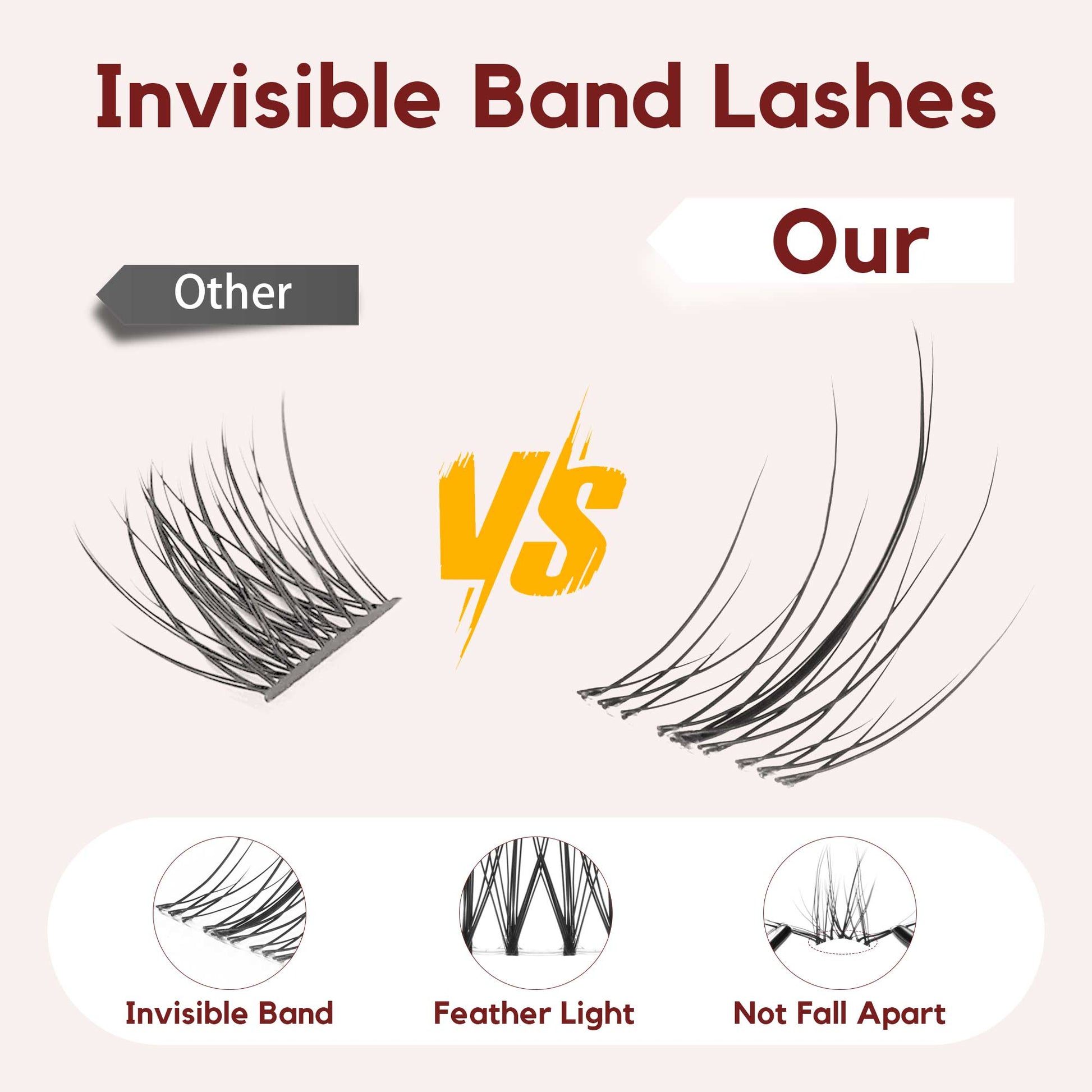 Soft and Lightweight: Our invisible band lash clusters are made of high-quality imported materials, it is 0.05 mm thickness, soft, lightweight, natural, and comfortable to wear all day.